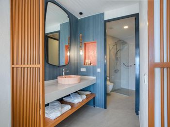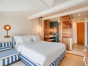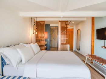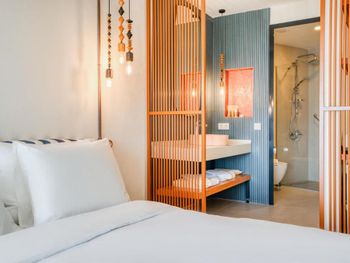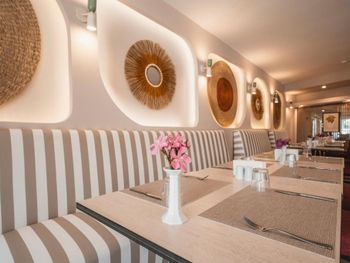 Не может понравиться то, что персонал плохо ориентируется на сайте booking., не хочет заселять мужа к жене, потому что номер ошибочно был забронирован мной на одного человека, а исправление на двоих они не получили. Наконец, списали оплату дважды, в результате некачественной работы терминала, и пришлось потом нервничать, ждать возврат. В номере пол из плитки, как на рецепшн, грубо, сам номер оооочень мелкий, ключ от него амбарный, шкаф крохотный, вообще, места мало, только уборная крупная. С едой слабовато. Вечером диджей умудрился включить такой русский шлак на террасе ("кайфууушки....мои кайфуууушки..."), что мозг вскипает. Бармены ни бельмеса ни на каком. Слово "шампанское " не поняли совсем. Попила воды.