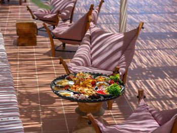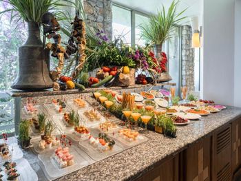 Однообразная еда! Пополнять во время сервировочные тарелки едой! Официантам меньше греметь посудой( а то звук как в столовой)