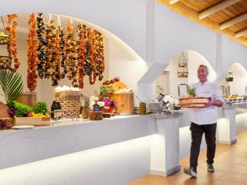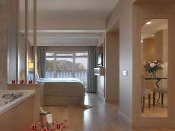 Потрясающее месторасположение с захватывающими видами, колоритный отель с многолетней историей, ухоженная территория, неплохой песчаный пляж, чистое спокойное море с плавным заходом, прекрасные бассейны, удобная кровать king size, состоящая из двух полуторок с комфортными матрасами и раздельным бельем, приятный лобби- бар с уютной открытой террасой, многозональный ресторан с отдельным помещением «без детей», видовой лаунж «Physkos Bar» с задорными вечеринками, многокилометровый красивый променад рядом с отелем, симпатичные веселые окрестности с большим количеством баров, ресторанов, магазинчиков. Есть чем заняться на пляже: скутеры, парашют и т.д., также можно съездить на морские экскурсии. Питание и напитки по системе «всё включено» вполне достойно и оправдано. Дружелюбный персонал.