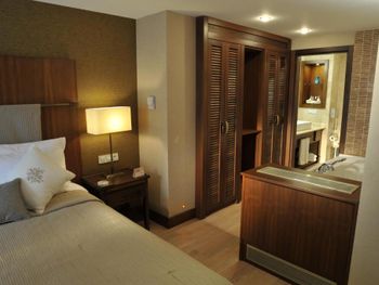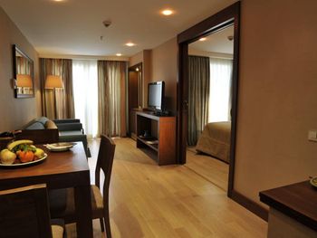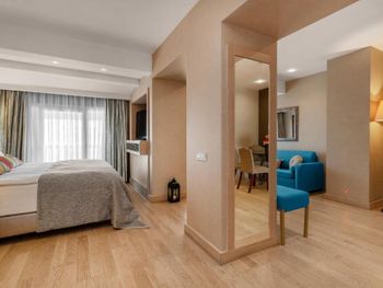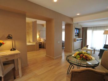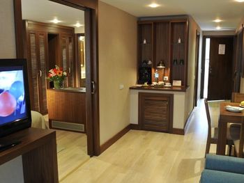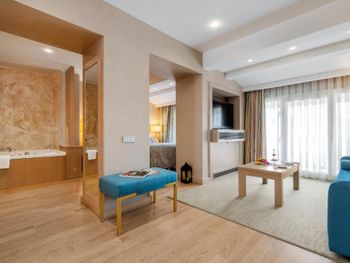 Номера в курортном отеле Marti Luxe оснащены кондиционером и оформлены в современном стиле с паркетным полом и окнами от пола до потолка. Каждый номер располагает мини-баром, телевизором с плоским экраном и спутниковыми каналами, собственной ванной комнатой.