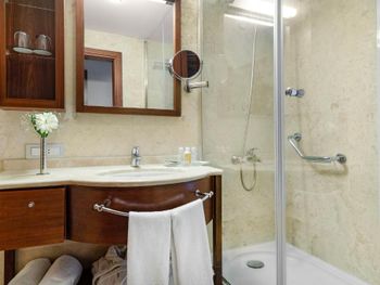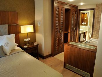 Неудобно ходить в СПА через улицу и главное фойе. Очень старый номерной фонд, прям очень: у друзей в соседнем номере развалился диван. У нас в ванной комнате постоянно была лужа на полу, так как плотно не закрывались шторки душа.