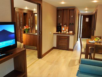 Нас поселили в номер с видом на обгоревшие горы и лишь немного с боку было видно море. Хотя я бронировал номер с видом на море и в информации об номере на изображениях были совсем другие виды в отличии от тех где нас поселили. Было заявлено что размер номера 35 квадратных метров, но по факту был номер размером 15 квадратных метров. Я сказал об этом сотруднику на ресепшн, но он ни чего сделать не смог.