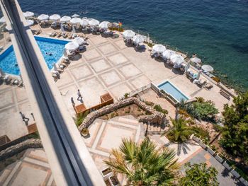 Отличный берег и бассейн, море красивое, прекрасный вид и территория. Услужливый персонал.