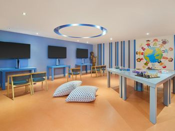 Мини-клуб предназначен для детей в возрасте от 1 года до 3 лет, от 4 до 7 лет и от 13 до 17 лет. Благодаря системе видеонаблюдения в мини-клубе родители детей в возрасте от 1 года до 3 лет могут наблюдать за ними из номера. Детей младше 1 года можно оставить в мини-клубе под присмотром персонала. За пользование спальной комнатой и игровой комнатой для детей плата не взимается.