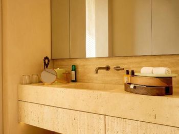 Номер сомнительный. Очень темный и неудобный. Возле кровати идёт бортик об который можно удариться ногой. Так же возле балкона есть ступенька, про которую постоянно забываешь и можно упасть. Странные раковины с неудобными кранами. При мытье рук вода летит на одежду , которая висит в 1 метре от раковины. Непродуманный номер.