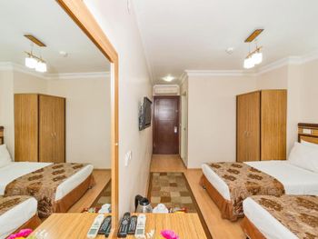 В бронировании было указано ,номер с одной кроватью и балконом ,но в итоге ничего этого не было - и нам сказали ,что через 3 дня нам могут поменять номер - но мы сами потом не захотели (ТК я же изначально платил за номер с балконом ) Ещё не понравилось ,что над душевой кабиной в ванне ,огромная дыра ,пахнет подвалом ,сам душ сломан ,вентиляция отваливается .Простыни в пятнах ,в том числе и накидка на кровать грязная .Лампочка в плафонах перегорела .И даже стаканчик воды вы не сможете попить ,они отвечают что вода в магазине ..Я снова полечу в Стамбул ,но больше не остановлюсь в данном отеле и не буду его рекомендовать