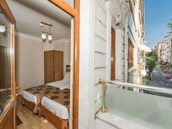 Номер теснее, чем кажется на фото, чтобы выйти на балкон, дверь полностью не раскроется, кровати не позволят. Дверь в санузел не закрывается совсем, то есть всегда приоткрыта. Очень хорошая слышимость соседей. Прямо напротив отеля, в окна направлены три мегафона транслирующих службу мечети. Улица крутая, склон довольно крутой.