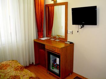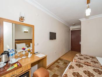 Скудный и с совершенно одинаковым набором продуктов завтрак, на четвертый день уже тошнило от него. Помидоры в сезон не съедобные, поэтому они оставались и их подвали на следующий день слегка прокисшими. Ресторан находится в цокольном помещении. Нет чайника в номере, хотя на всех фотографиях номера он есть. На уточнение почему нет чайника, персонал ответил, что можно в любое время ходить пить чай в ресторан, но как оказалось это платно - по 3 лиры за чашку, цена как и в ближайших кафешках. На заявленной террасе отеля мусор и нет бара, вид открывается на развалины и цеха. Идти в транспорту не далеко, но по улочкам очень грязным и небезопасным на вид в вечернее и ночное время. Постельное белье старое. Полотенца и постель за 4 ночи пребывания не меняли. Заявленные тапочки пришлось идти просить на ресепшен, они очень удивились и с трудом нашли. Курить в отеле запрещено, но не смотря на это курили разве что не в номере, персонал на лестницах, постояльцы на балконе, в номере даже пепельница была. Выбрала этот отель из-за высокого рейтинга на букинге, а реально он тянет максимум на 4 балла. Очень шумно на улице с раннего утра до очень поздней ночи.