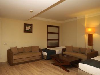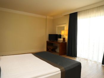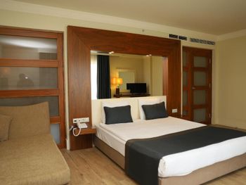 Пляж расположен не в 600 м, а в 1 км от отеля и именно поэтому до пляжа можно добраться на маршрутном такси, которое ждет 2 минуты, а потом уезжает. С коляской и ребенком это неудобно. То есть людям с детьми до года можно добраться до пляжа только в качестве головешки в 45 градусную жару. Отель имеет кухню, которая находится на 1 этаже. Кондиционеры не работают, персонал требует чаевые от посетителей отеля, что является неприемлем. Старый отель, невкусная еда, есть нечего. Предлагают овощи , рис, макароны, печень. Пиде ( турецкая пицца-мясо отсутствует -одно тесто, дешевый алкоголь. Сразу видно, что отель экономит на гостях. Все столы заняты, официанты не убирают тарелки, вино не разносят. Самообслуживание в пятизвездном отеле считается приемлемым. Не работает кондиционер в номере, запах плесени повсюду ,персонал на ресепшене всем видом показывает насколько хочет, чтобы мы уехали побыстрее из этого отеля. Данный отель требует проверки санэпидемстанции, а также уверена в том, что после проверки классификация отеля будет изменена.