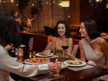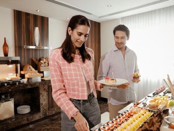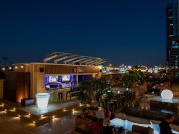 На территории работают уютный ресторан Prego’s с открытой кухней и ресторан Channels, где готовят блюда в присутствии посетителей и организуют тематические вечера. В фитнес-центре отеля Rotana можно позаниматься на силовых и кардиотренажерах, а также посетить сауну и занятия по фитнесу. Юные гости могут весело провести время в детском клубе.