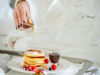 Номер меньше, чем обычно. Персонал: пока мы ждали номер, спросили, где можно поесть. Поесть нам предложили прямо в холле за журнальными столами, заверяя, что ресторана в отеле нет. Когда мы сделали заказ, из-за английского завтрака с беконом, нас отвели в ресторан, вход в который был прямо в холле, и цены не отличались. Там были мухи внутри. Причин скрывать "сокровище" я не нашла, а на прямой вопрос, персонал не ответил.