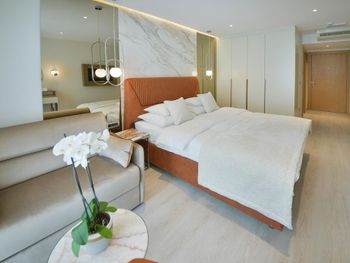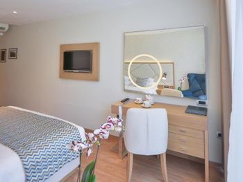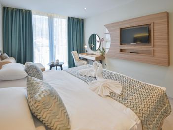 Отличный отель. Отдыхаем в ней уже не первый раз. Приветливый и профессиональный персонал. Питание хорошее, разнообразное - по системе шведский стол, номер чистый уютный. Spa и услуги в нем на высшем уровне. Отельный пляж качественный, правда требуется немного к нему пройтись. Мы докупали иногда ужин или обед - 10 эвро с человека.
