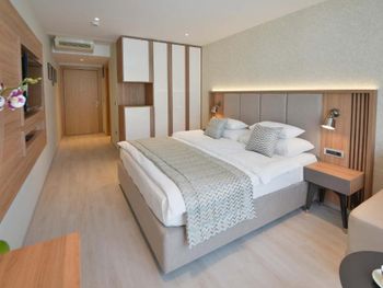 Хороший отель, приезжала сюда чуть больше 10 лет назад и с удовольствием вернулась еще раз. Мне повезло с номером, он был в новом корпусе: чисто, красиво, небольшой шум от дороги, но не смущал)) Еда - разнообразная на завтраках, но для тех, кто придерживается здорового питания выбор не велик: каша только на молоке, б/глютенового стола нет. Сыры, фрукты, много выпечки/тортов/десертов и пр. Уборка в целом норм, но будет лучше, если оставите чаевые :) Конечно близость пляжа - это главный плюс отеля, 3 минуты и на месте. Вайфай стабильный на территории отеля. Шумоизоляция хорошая. Хочется поблагодарить администратора спа (к сожалению, не запомнила имени девушки), максимально клиентооринтирована и заинтересована в привлечении клиентов, молодец. Рядом с отелем: почта, супермаркет через дорогу (воскр - выходной), чуть выше супермаркета овощная палатка. В 5 минутах от отеля в сторону Иберостар пешеходный тоннель в горе, который ведет в будву, 15 минут пешком.