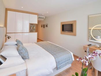 В отеле предлагается размещение в элегантно оформленных номерах с меблированным балконом, кондиционером, мини-баром и бесплатным доступом в интернет. Из окон большинства номеров открывается панорамный вид на море.