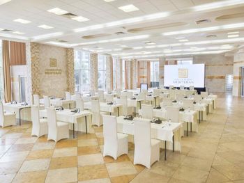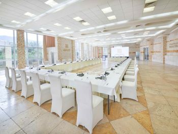 Площадь многофункционального конгресс-центра составляет 2 000 кв, м. В распоряжении гостей 12 конференц-залов и амфитеатр вместимостью до 424 человек.