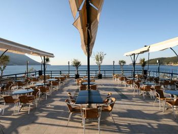 В ресторане отеля подают изысканные блюда средиземноморской и черногорской кухни. Столики также могут быть накрыты на открытой просторной террасе, с которой открывается вид на пляж и кристально чистое Адриатическое море. Кроме того, на территории отеля работает бар.