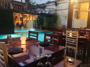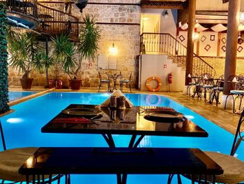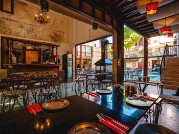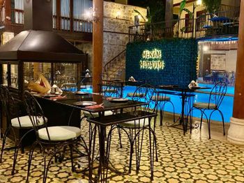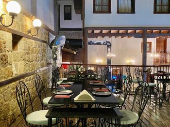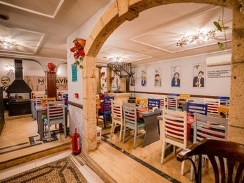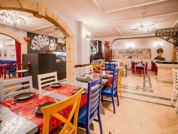 Гости могут посетить крытый ресторан или пообедать на свежем воздухе во внутреннем дворе. В меню представлены блюда местной турецкой кухни и классические блюда международной кухни. Кроме того, осуществляется круглосуточная доставка еды и напитков в номер.
