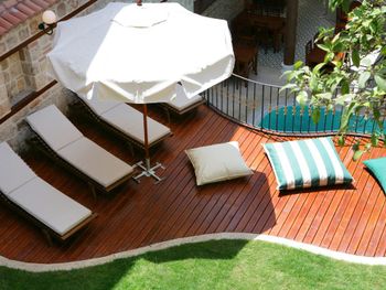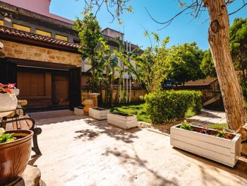Номер ужасный. Впечатление, что переоборудовали хозяйственное помещение. Мне достался номер-пристройка на проходе к остальным номерам. Первый этаж, размещен как будка охранника. Слышно любой шорох, т.е все, кто идут к своим номерам, ощущаются будто ходят вокруг кровати. На окнах нет решеток, приходится закрывать тяжеленные окна (поднимать и опускать деревянные ставни с окнами). Два окна и стеклянная дверь - все в сторону пути к номерам. Занавески постоянно приходилось держать закрытыми, еще следить, чтобы на двери полностью весела занавеска. Окна невозможно оставлять открытыми, особенно когда уходишь. В номере постоянно непонятный воздух не проветриваемого помещения. Был еще один номер, но его как-то не особо радостно показали после настоятельной просьбы, сказали, там шумно, музыка от соседнего бара, и быстро увели. А здесь не шумно?! Два окна, еще и дверь стеклянная и полметра до прохода к номерам. Можно было вообще кровать в саду поставить - тоже самое. Завтраки условные. Два яйца улитые жиром на двоих, какая-то колбаса, плавающая в жире, несколько видов сыра, немного зелени, оливки, несколько кусочков колбасы, варенье, хлеб, мед, что-то непонятное мучное, немного огурцов и помидор - по несколько кусочков на человека. Все на маленьких тарелочках. Весь стол заставлен, есть нечего.