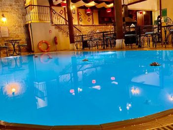 Неприветливый ресепшен. Номер не соответствует брони(бронировали делюкс, а заселили в стандарт). Бассейн только для декора( плавать нельзя). При отеле работает ресторан до 12 ночи музыка для всех желающих. Это скорее ресторан с комнатами, чем отель. В номере нет чайника, в холодильнике платный мини-бар, поэтому пользоваться холодильником не получится. Нет ощущения, что мы гости отеля и что нам рады.