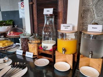 Вайфай абсолютно ужасный, иногда ловит еле еле Освещение в номерах никакущее, накраситься или сделать какие-то мелкие вещи с собой не получится Кровать как будто на полу спишь, про подушки-кирпичи я молчу Смеситель в раковинах насколько маленький и короткий, что ни то что постирать что-то, даже умываться неудобно Завтрак однотипный каждый день, и то, из еды для завтрака там только омлет Мы свой первый номер меняли, т.к. окна выходили на дорогу, а там невозможно спать, потому шумки там от слова НИКАКОЙ. Как будто ты вот на этой самой дороге и спишь. Вроде отель не самый дешёвый взяли, но я б рекомендовала доплатить но взять получше вариант