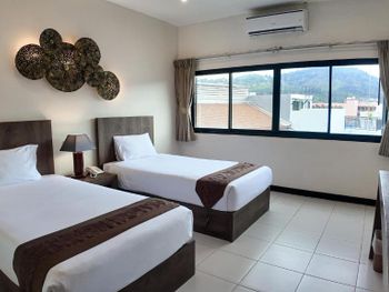 Лучше вообще не останавливаться на Патонге, а выбрать другое место. Если уж Патонг, то, говорят, в северной части получше пляж, в южной, где находится отель, море и пляж отвратительные, очень грязно. Номер небольшой, хотя я брала улучшенный, балкон выходил на кучу электро проводов, кондиционер очень шумит. Бассейн на крыше хорошо, но я ожидала большего. Приветливый персонал, помогали с вопросами. Завтраки, на мой взгляд, лучше взять в других кафе, я попробовала один раз - мне не понравился. За углом дешевый массажный салон.