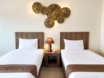 Мы бронировали улучшенный номер с хорошим видом, но по приезду нас заселили просто в отвратительный номер с плохим видом. Благо персонал отреагировал на нашу просьбу о переселении и уже на следующий день нас заселили в более-менее нормальный номер. Уборка номеров поверхностная. Завтраки однообразные. Так же запаситесь берушами так как звукоизоляция так себе. Так же несколько дней не было нормальной подачи воды, но тут не вина отеля (проводились какие-то работы)