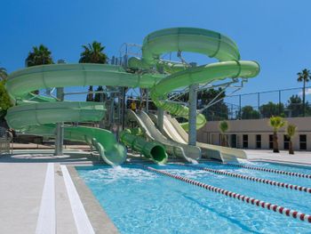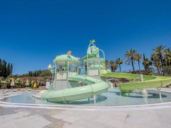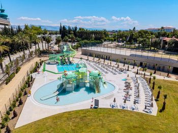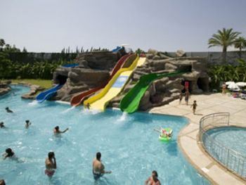 На фото отеля ( на букинге) длинная река- бассейн. Этого нет. Ничего страшного, но раз этого нет, надо поменять фотографии. Аквапарк стоит отдельно. Там просто горки и небольшой бассейн. С утра до 16 часов и ещё перерыв с 12.30 до 14.00 вроде. Плюс в том, что он не очень большой, детей всегда видно. Спасатели иногда смотрят, а иногда в телефоне- это минус.