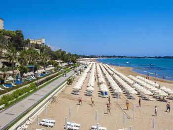 Отель не большой, компактный. Набережная 2,5 км до центра Сиде. Утром бегали, вечером гуляли по ней. Пляж чистый, всегда были места, на пляже бар, но без коктелей, бегали к бассейну за коктелями.
