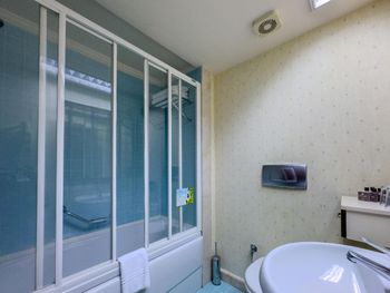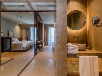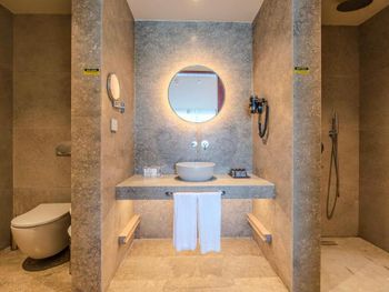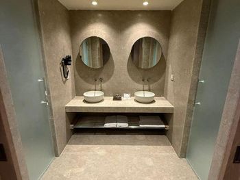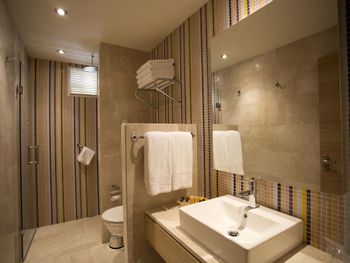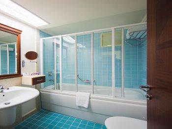 Не понравились стеклянные двери в туалет, которые находятся напротив зеркала. Это очень неудобно, особенно если с тобой будет ребенок.