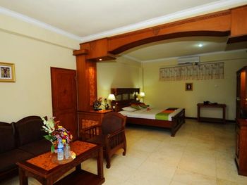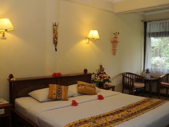 Номера пляжного курортного отеля Melasti с кондиционером обставлены классической деревянной мебелью и оформлены с использованием балийских тканей. В них есть телевизор со спутниковыми каналами и гладильные принадлежности. В отделанных мрамором ванных комнатах в вашем распоряжении душ с горячей/холодной водой и фен.