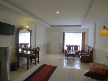 Кровать очень сильно скрипела, наверно слышал весь отель. Это реально большой минус.