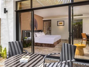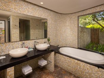 Курилка в коридоре, мутная вода в бассейне, также наступили на что-то острое под водой в бассейне, в номере имеется межкомнатная дверь, которая ведет в соседний номер, шумоизоляция на нуле, завтраки тоже не удивили, не очень вкусные. Не вздумайте брать виллы, это вообще треш.Этот отель точно не достоин 5 звезд.