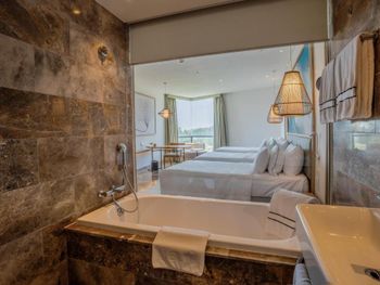 Все номера оформлены в современном стиле и оснащены кондиционером, платяным шкафом, сейфом, диваном и телевизором с плоским экраном и кабельными/спутниковыми каналами. В числе удобств мини-бар и электрический чайник. Собственная ванная комната с душем укомплектована феном, банными халатами и роскошными туалетно-косметическими принадлежностями. Из номеров открывается вид на море, горы или сад.
