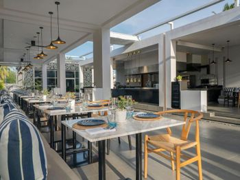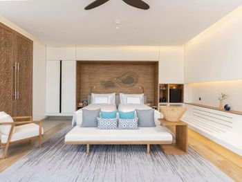 Хаос на завтраке, который выражался в долгом обслуживании и сам ассортимент завтрака (маленький выбор для 5*), нельзя пользоваться соковыжималкой (хоть и лежат овощи и фрукты), забивается, а на выходе сока нет. На ужин ресторан не вкусные блюда. Не все виллы (мы снимали 4 виллы на две семьи) и есть с чем сравнить - часто на полу оставался песок после уборки в некоторых виллах.