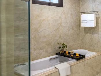 Вилла очень просторная и уютная. Везде все очень чисто. Ухоженная территория. Очень внимательный персонал. Пляж чистый и ухоженный. Хороший общий бассейн. Много разной еды на завтрак.