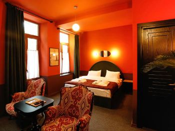 Отель расположен в центре города, до центральной площади 1-2 минуты. Номера атмосферные, сделаны в ретро-стиле. Хороший матрас на кровати. Есть вешалка для верхней одежды, что актуально для зимнего сезона. На завтраке можно попросить приготовить хороший кофе из кофемашины. Приветливый персонал на ресепшн. Питьевая вода пополняется ежедневно. Уборка в номере по требованию. На завтраке выбор не очень большой, но голодным не останешься: вареные яйца, гречка, сосиски, свежие помидоры и огурцы, закуски, нарезка сырная и мясная, творог, печенье.