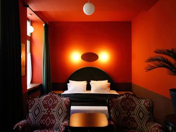 Необычные интерьеры, просторный номер и ванная комната. Туалетные принадлежности, халаты, тапочки, фен, холодильник - все в наличии. Отличное местоположение, достойный завтрак, лифт.