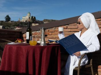 Из плюсов - есть лифт, размер номера, прекрасный вид с балкона на храм Баграти, приветливый персонал, чистота. Местоположение максимально удобное. Завтраки вкусные, довольно много чего есть на выбор. Что немаловажно - быстрый интернет, который позволил беспрепятственно работать всю неделю. Организация туров также хороша, спасибо Отари за рекомендации. Также максимально аутентичный и красивый винный погреб. Много деталей в дизайне, которые хочется рассматривать и трогать)
