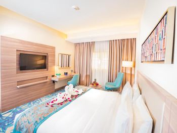 Всё понравилось. Молодцы. Турбо заселение. Прекрасный персонал, отель, бассейн, сауна, хамам. Все супер. Чистый номер. Завтраки, ужин. Очень вкусно👍. И цена отличная. Обязательно вернёмся. Спасибо большое. Очень рекомендую.