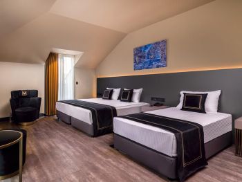 Питание в отеле тоже необоснованно дорогое. Если ужин был ещё более-менее (но мы ждали его больше часа!), то завтрак - это просто недоразумение. За 7 евро предлагается одно варёное яйцо, несколько кусочков сыра, пара тончайших слайсов колбасы, треть сосиски и половинка огурчика. Кофе (отвратительного качества) принесли только после звонка, к нему не предложили ни сахара, ни молока. После второго звонка и разговора на повышенных тонах принесли сливки... сухие! Это в "премиум"-отеле, где 5 шагов от рецепции до корпуса вас везут на гольфмобиле (зачем - мы так и не поняли, видимо, чтобы обосновать слово "премиум" в названии отеля).