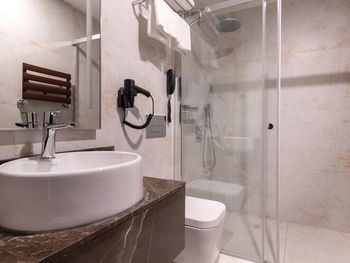 Дверь в душевую кабину неправильно открывается , для больших людей есть возможность вообще не попасть в душ , или попасть но дверь тогда будет открыта и сильно нальет воды в коридор , кран почему то не включал воду маленького душа .