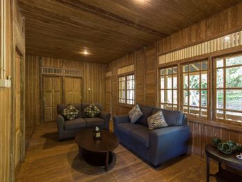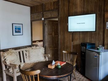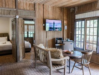 Ужасное состояние домиков. По виду им несколько десятков лет. Они деревянные, т.к. концепция - эко отель. Дерево сгнило, петли дверей приклеены скотчем, везде щели, сантехника течет и пахнет, всё ну в очень жутком состоянии. Собственник должен сделать ремонт, даже самые дешевые гесты выглядят лучше. Кондиционеры тарахтят как трактора, стены трясутся от этого.