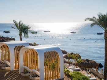 Изначально выбирала отель согласно новизне и описанному сектору услуг и комфорта. На деле поездка из аэропорта в отель заняла 8 минут, что очень приятно. Близкого расположения аэропорта заметно не было. Мы отдыхали в Январе, поэтому туристов было примерно процентов 20. Что для нового отеля только плюс. Отель не построен с нуля, все-таки на его месте находился другой отель, как мы выясняли. Здесь нет большой территории, все достойно камерно. Территория находится на возвышении от моря. Отель позиционирует себя, как отель в стиле « Бохо».Для Египта действительно ново, интересно и свежо. Все кругом белое.Качество покраски спорное, но в целом смотрится хорошо. Хотя и заметны перекрашенные части предыдущего отеля. Особенно хорошо смотрятся в номере подсвечивающие части. Стиль отеля понравился. Новые лежаки, деревянные, удобные. большие комфортные полотенца, которые меняются по карточкам, хоть каждые 5 минут. В Бассейнах действительно вода с подогревом, что было важно в январе. На пляже есть изолированные шатры на возвышении и просто лежаки. Есть даже красные платки, которые можно повесить рядом с собой и тогда вас никто и не побеспокоит с рекламой услуг или напитками. Вход в Море с пантона, очень красивый риф с рыбками. Весь персонал надо сказать внимателен и заботлив. Менеджер отеля , каждый день спрашивает о ваших впечатлениях. По поводу ресторанов: система a la cart понравилась. Мы не заметили медленного обслуживания. Возможно из-за небольшого количества туристов. Весь персонал старается. Подача блюд тоже приятная. Красивая посуда.Вино понравилось. Если , вам что-то не нравится, персонал тут же пытается это исправить. Странно, что местное шампанское только доступно в концепции all inclusive гостям повышенной категории номеров. Весь алкоголь местный. Премиальным он считается видимо за счет этикеток на бутылках. Рядом с отелем в 7 минутах пешком, торговая улица Soho square.