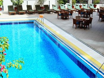 Басейн глубокий и чистый, но на весь отельный бассейн всего три лежака! Возле бассейна висит указатель, что он работает до 8 вечера, но когда мы пришли после 19 часов, то нам сообщили, что басейн работает до 7 часов вечера и в него нас не пустили!