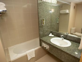 Номера: нам дали номер с одной кроватью, якобы кинг сайз, по факту там стояла кровать 1,40... Мы попросили поменять на номер с двумя отдельными кроватями, стало лучше. В номере было прокурено все, матрасы продавлены, в номере пахнет не очень приятно, затхлостью какой-то, такое бывает когда в помещении долго никто не живет. Самое ужасное в этом отеле, что там не открываются окна! Даже не проветривание! Там вообще нет механизма открывания. Ты целый день с открытими занавесками, солнце херачит в номер и конечно там становится очень душно и открыть ничего нельзя! Это было издевательство! Выходом было открыть дверь и включить кондей, чтобы старый воздух хоть немного ушел. Мебель вся старая, ушатанная и не очень чистая, с какими то жирными пятнами и тд. Ванная не видела ремонта лет 20 уже. Короче на фотках конфетка, а в действительности очень "уставший" отель.