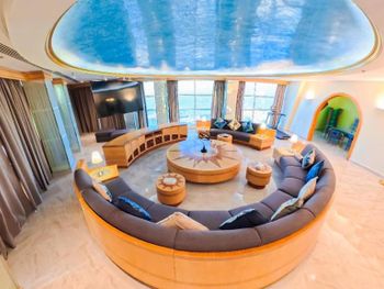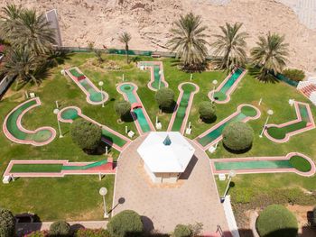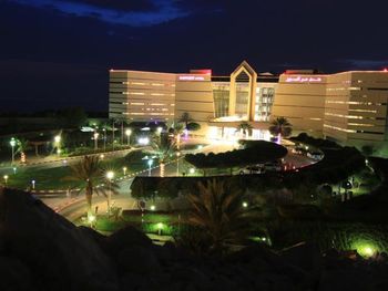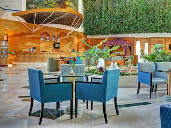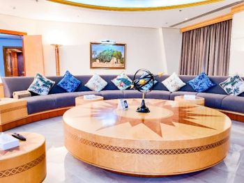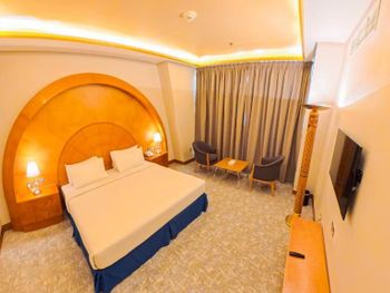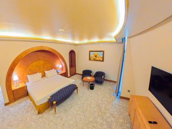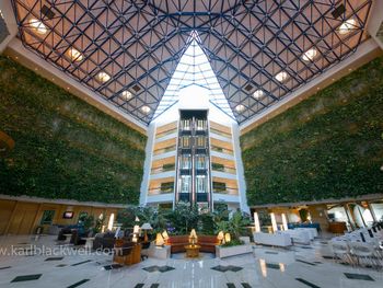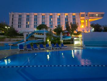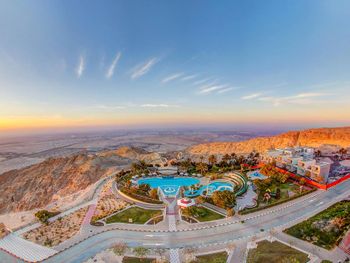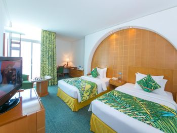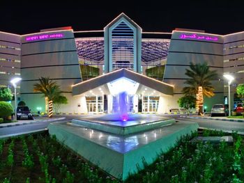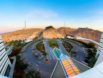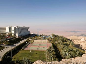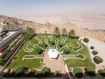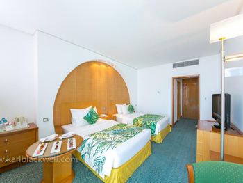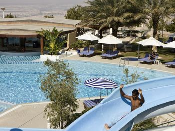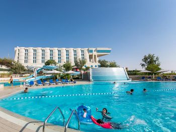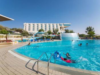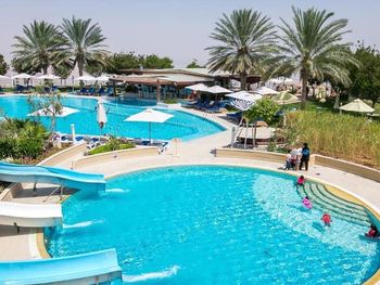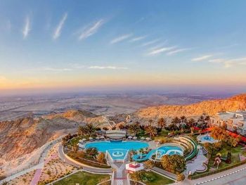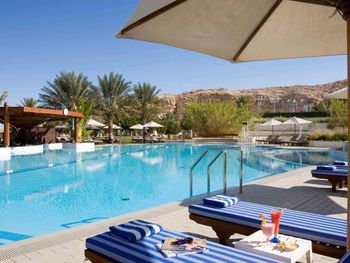 Уникальный оазисный курортный отель Mercure Grand порадует гостей изысканной архитектурой. Он расположен на горе Хафит, на высоте 915 метров. К услугам гостей 3 ресторана и 3 бассейна с водными горками.