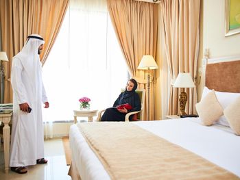 Я часто путешествую, но такого отношения я ещё не видел. Раннего заселения естественно не получилось, хотя в комментариях об этом писали, тут без претензии, но то, что началось дальше это жесть, нам дали номер 61м2 с одной большой кроватью, хотя бронировали 2 взрослых и 2 ребенка, и брали номер 61м2 с 2-мя кроватями. Когда я спросил, где вторая кровать, мне сказали, что если Вы ляжете с женой по краям, то дети поместятся посерединке, жесть, ну или возьмите доп. кровать за 130 дирхамов в СУТКИ. Я считаю это вымогательством, потому что я указал в бронировании 4 спальных места, они должны их предоставить, а они меня на одной кровати селят(. Спустя два часа переговоров мне предложили улучшить категорию номера за 840 дирхамов, на что мне ПРИШЛОСЬ согласиться.