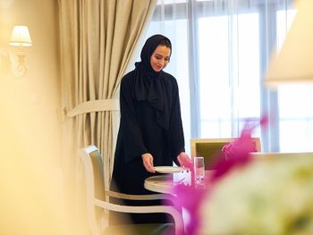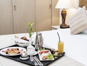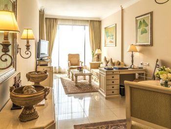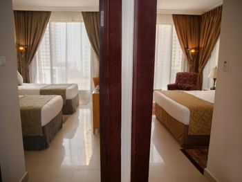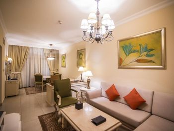 Мы бронировали апартаменты с одной спальней, размещение 2 взрослых +2 детей 3 и 5 лет. По факту в апартаментах диван в гостиной не пригоден для сна, он маленький и не раскладывается. Аренда 1 кровати в сутки 100 дирхам, поменять на другие апартаменты с 2 комнатами - 200 дирхам в сутки. Прошу не вводить в заблуждение гостей и при брони ограничивать размещение в 1комнатных апартаментах максимально 2 человека, тк большее количество человек проживать там не может. Ещё момент: полотенце для пляжа не выдают, нужно покупать самим или везти с собой. Полотенцами которые выдают у бассейна - можно пользоваться только в бассейне. Персонал вам не даст ни одного полотенца, если поймёт что вы собираетесь его взять с собой. Трансфер на пляж 2 раза утром, хотя на сайте информация что 3 раза. Бронировать нужно заранее, иначе ехать на такси. И лифты - их просто тяжело дождаться. Утром в период завтрака можно ждать лифт 10-15 минут... И ещё, когда мы проживали в январе, то на верхних этажах шёл ремонт. Днем не всегда получалось отдыхать.