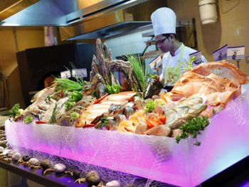 Очереди и огромные толпы на завтраки, нарезка фруктов выполняется небрежно, например в дыне часто шкурка попадается, и в целом фрукты нарезаны так не аппетитно, превращаются в кашу.