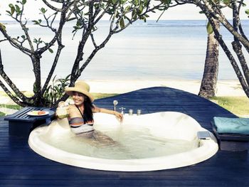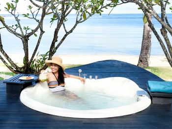 Несмотря на отзывы про то, что пляж не годится для купания, мне пляж понравился. Море чистое, дно местами каменистое, но я за 10 дне не испытала каких - либо неудобств при купании. На берегу прекрасно оборудована зона отдыха для гостей. Вокруг лес, тихо. Птицы поют. Кафе на пляже хорошее. В ресторане вкусно, но очень долго готовят. Но я никуда не спешила. Персонал доброжелательный. Спа превосходное, массаж дороже, чем на пляже тут же рядом, но комфортно, не жарко. Девушка массажистка богиня. Это лучший массаж из всех, что я делала ранее в Тае.